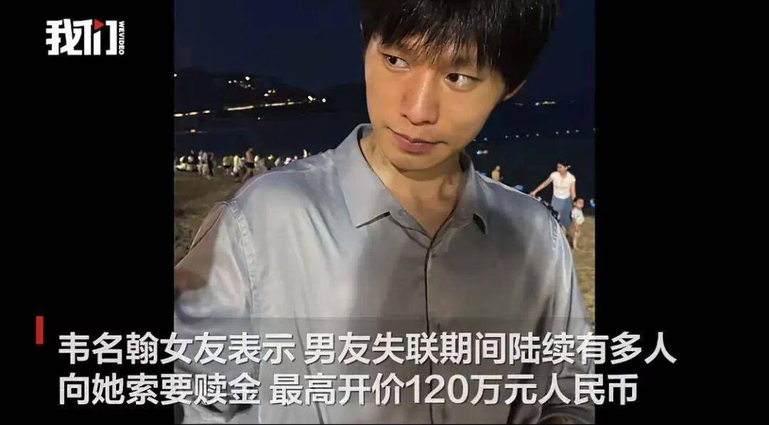 韦名翰女友暗意,男友失联技巧赓续有多东说念主向她索求赎金,最高开价120万。