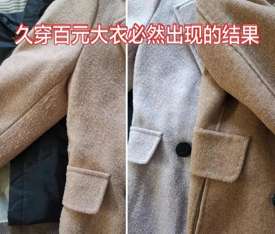 要是我们思要买到一件相比有品性的大衣外衣,就要遁藏百元露面的大衣。这种大衣穿在身上容易起毛起球及褶皱,版型不挺括有型,也莫得垂坠感,穿在身上很低价,这是大大齐市面上百元大衣势必出现的截至。
