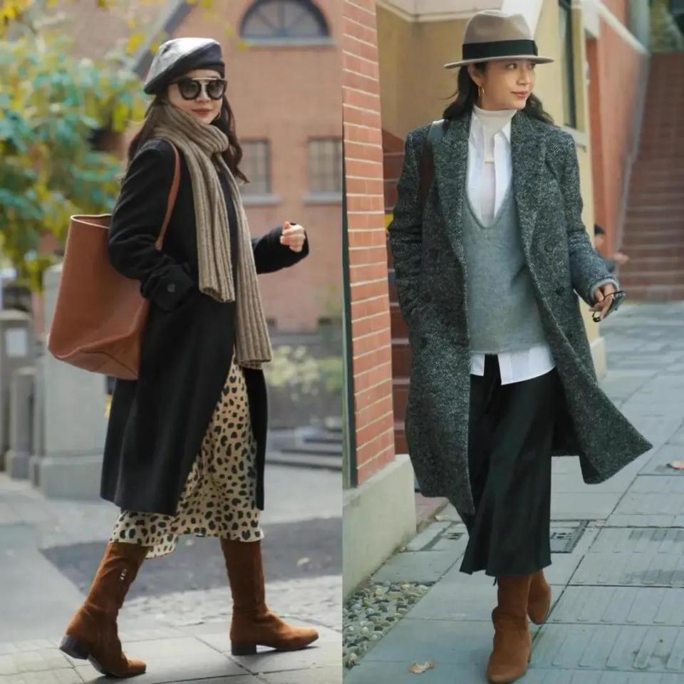 我们天然用大衣搭配裙子能呈现出优雅的气质,然而礼聘裙子亦然有一定的手段的。裙长过膝盖,不外脚踝碰巧卡在小腿肚的位置最好,这个技术无论你搭配是短靴照旧中筒靴,齐遏止易压身高。