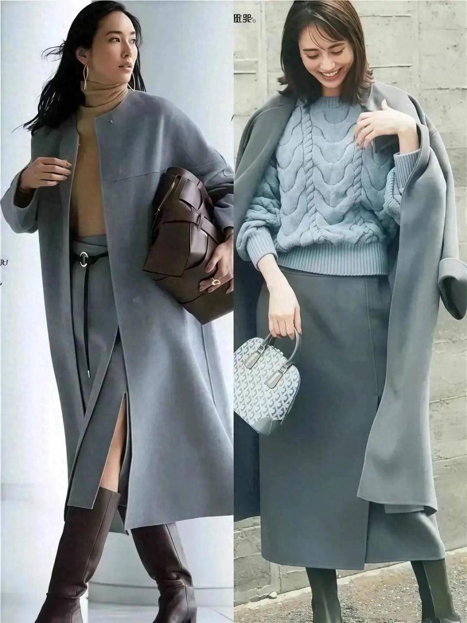 在南边城市,我们白昼外出的技术,太阳相比大,也相比讲理,完竣可以接受下衣失散的穿搭手段,用 X 型的灰色大衣外衣搭配上一条短裙,就要穿中筒靴,就能打造三七分的身段比例。
