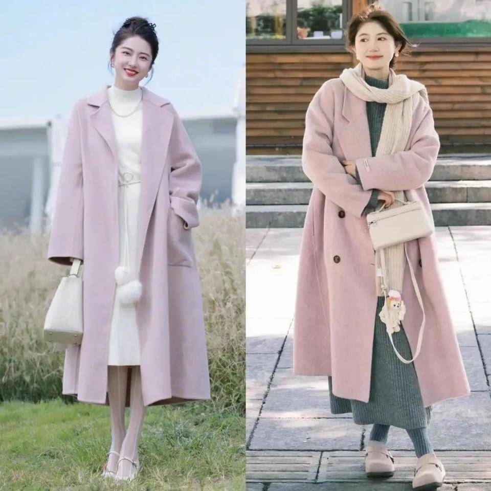只好大衣的版型挺括有型,穿在身上就算是一件粉色的大衣也会让你显得干练又优雅。举例,上头这位先锋达东说念主,就用粉色的翻领大衣搭配白色的赤诚毛衣和白色的散装半身裙,脚上穿的一对玛丽珍鞋,这么的打扮不光优雅,还能使得穿搭者年青有活力。