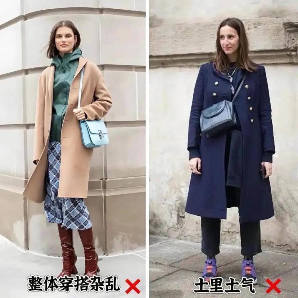 但也不可礼聘贪图很参差的裙子,或者是多种色调来穿搭,举例上图左边这位素东说念主,全体造型配色如故有 6 个面孔,完竣没罢黜“三色规章”,导致全体穿搭很错杂。