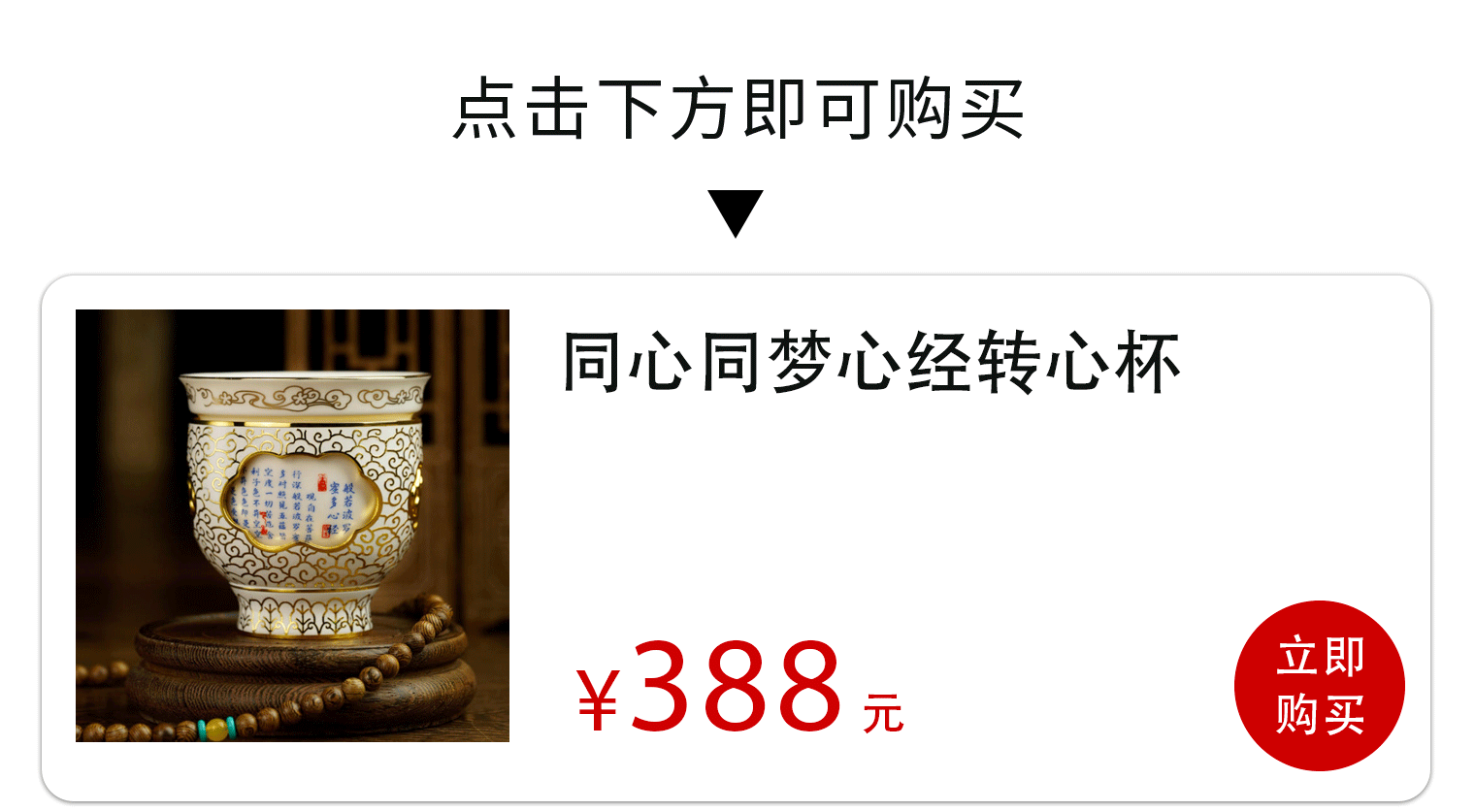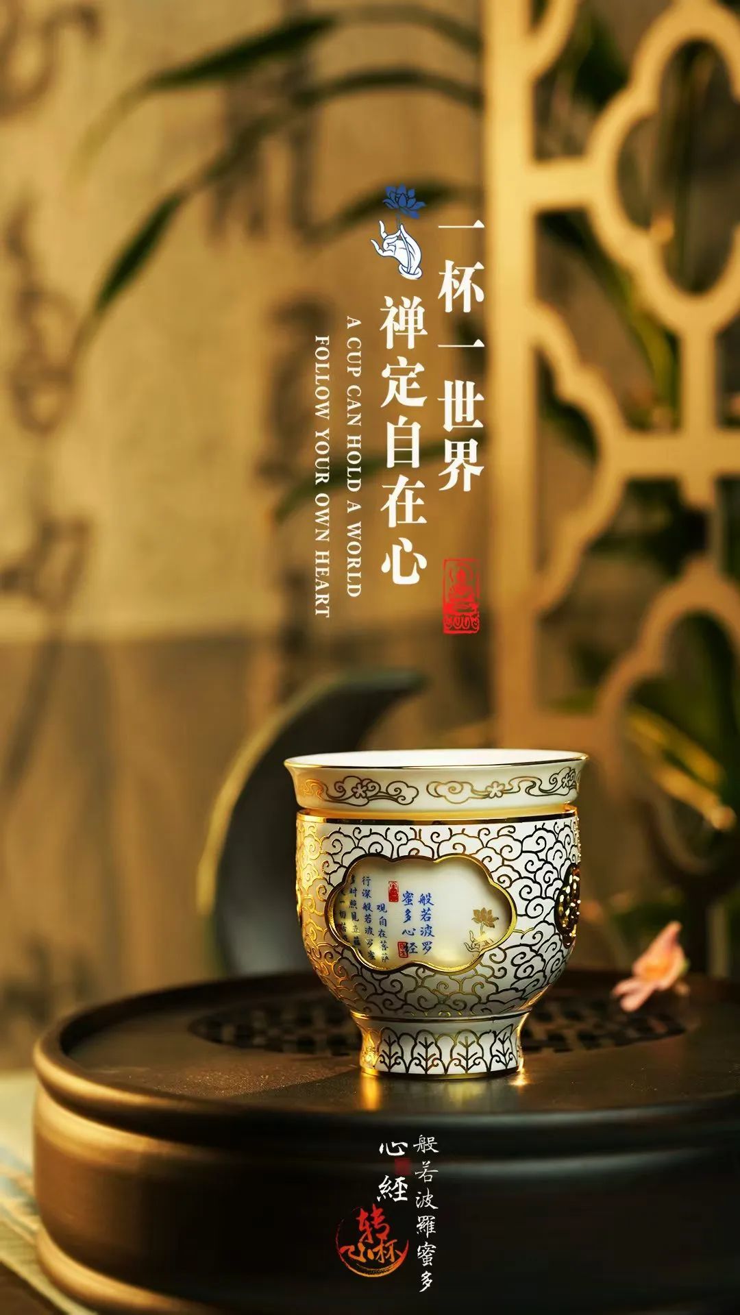 如今,咱们将陶瓷与禅意文化和会,打造了齐心同梦心经转心杯。