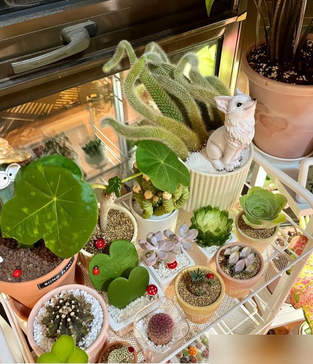 深桶盆压得尾巴直往下坠,换上矮墩墩的陶盆,茎秆我方就卷曲进取蹿,盆边再蹲个小狐狸摆件,仙气值班师翻倍。