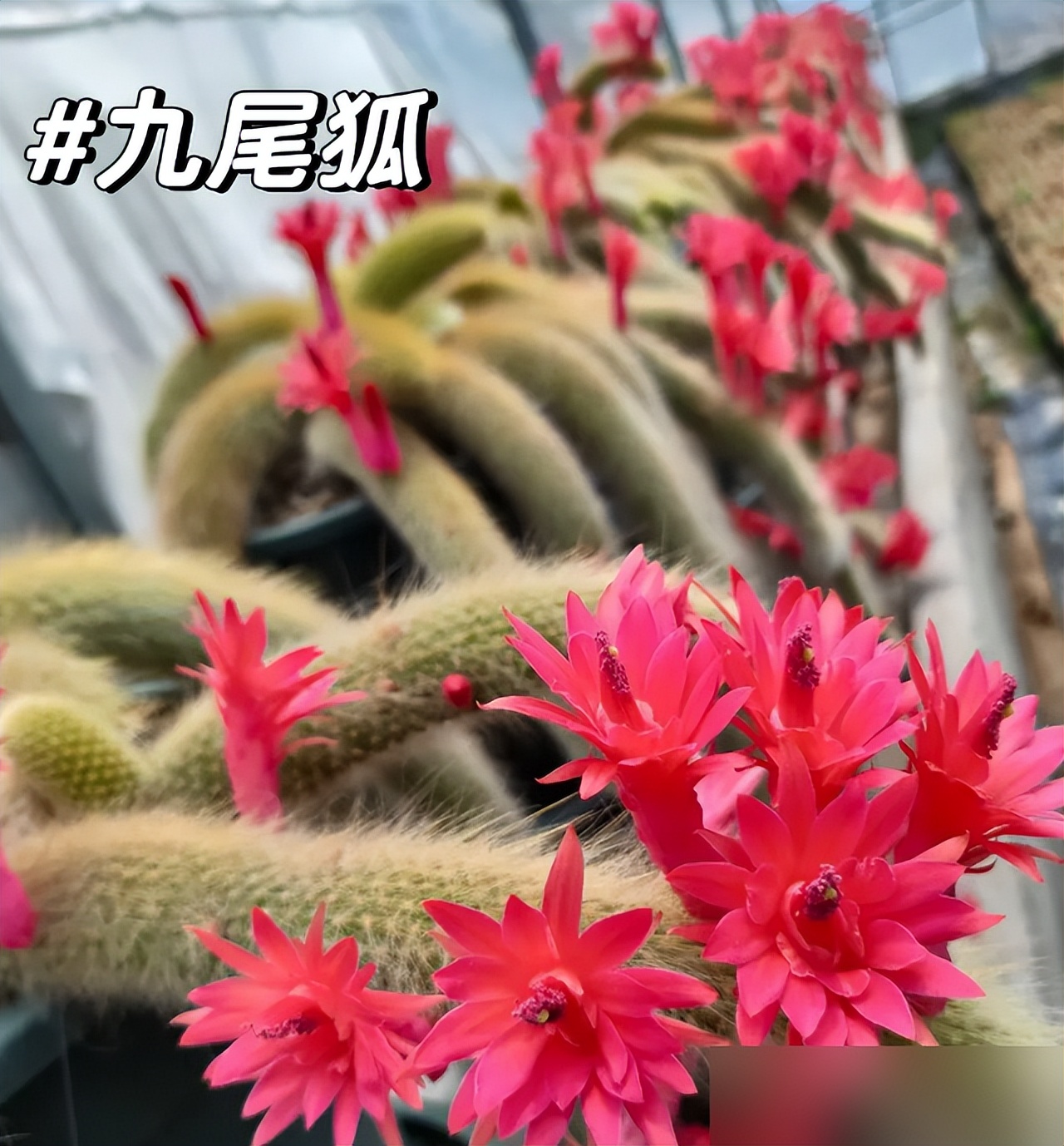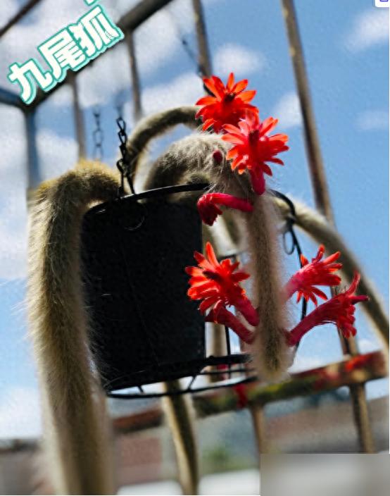 施肥也得卡准点——孕育期浇点多肉养分液,花芽冒头改磷钾肥,红艳艳的小花缀在皑皑尾巴尖上,活脱脱给小狐狸戴了朵头花。