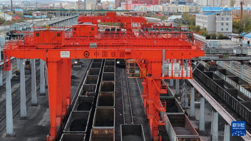 10月18日,在中国铁路哈尔滨局集团有限公司绥芬河站,机械化换装场在对入境货色进行换装功课(无东谈主机像片)。新华社发(曲艺伟摄)